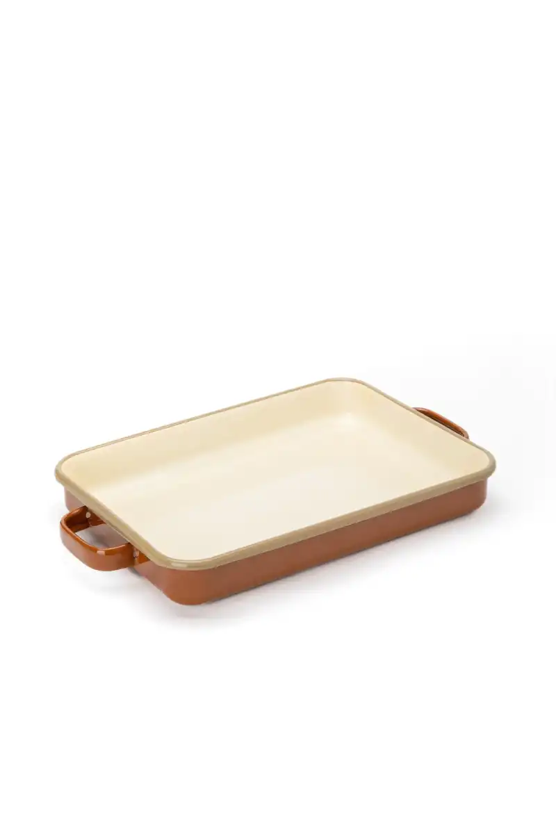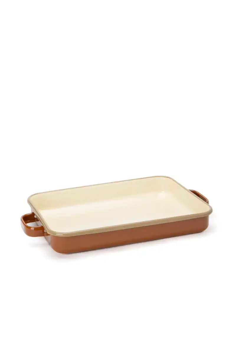 Tarçın Kordonlu Emaye Dikdörtgen Fırın Tepsisi, mutfağınızın vazgeçilmez yardımcısı olacak.Özellikler: