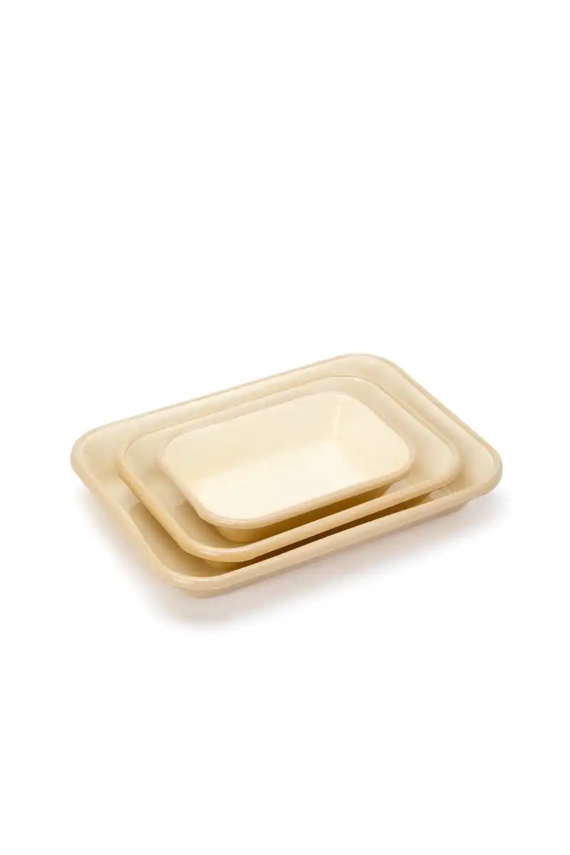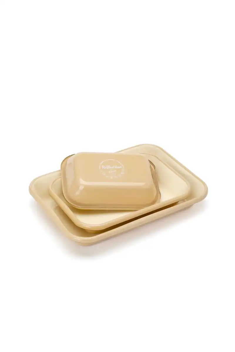 Refika'dan 3'lü Dikdörtgen Fırın Kabı Seti, farklı boyutlardaki dikdörtgen tabakları bir arada sunarak mutfakta maksimum esneklik sağlar. Zamansız tasarımı ve dayanıklı yapısıyla sofralara sade bir şıklık katar.