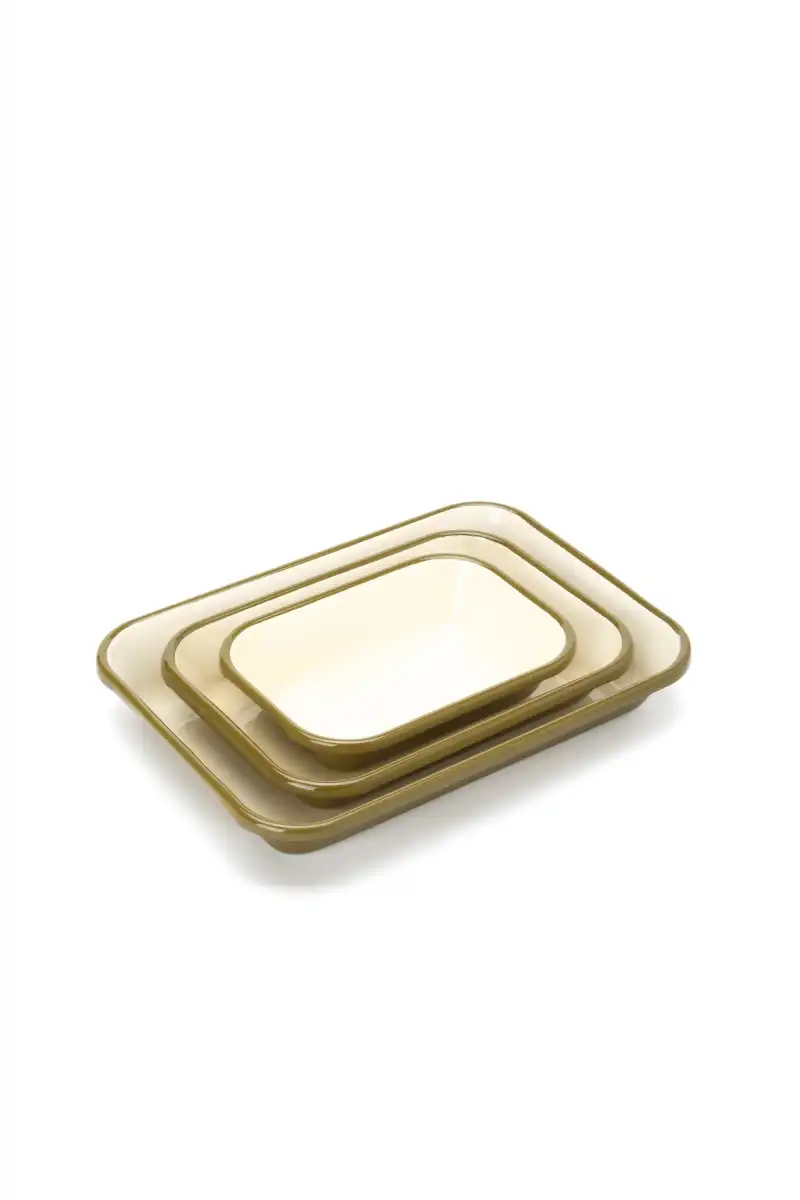 Refika'dan 3'lü Dikdörtgen Fırın Kabı Seti, farklı boyutlardaki dikdörtgen tabakları bir arada sunarak mutfakta maksimum esneklik sağlar. Zamansız tasarımı ve dayanıklı yapısıyla sofralara sade bir şıklık katar.