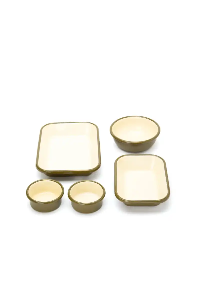 Haki Kordonlu Emaye Kahvaltı Seti, mutfağınıza ve sofranıza nostaljik bir dokunuş katarken, pratik kullanımıyla da hayatınızı kolaylaştırır.