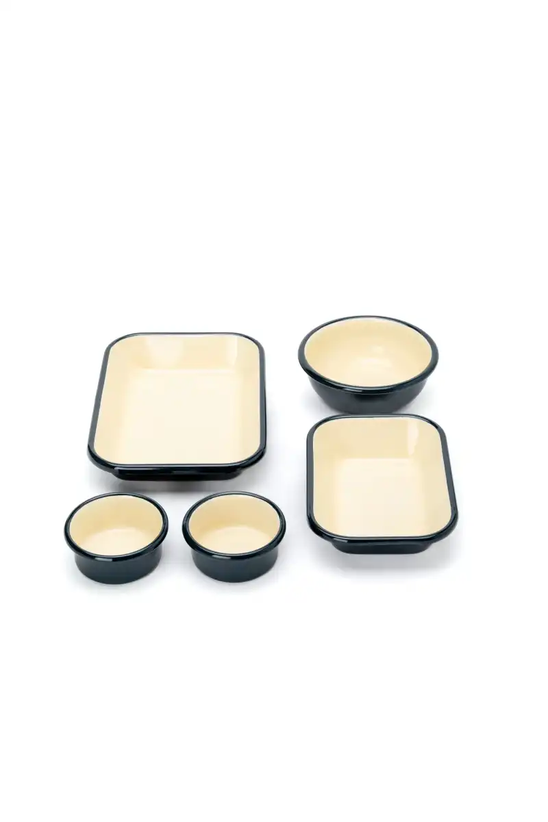 Refika'dan Emaye Kahvaltı Seti, şık ve pratik bir kahvaltı sofrası kurmak isteyenler için tasarlandı. Farklı boyutlardaki kaseler ve tabaklar, kahvaltılıklardan mezelere kadar her şeyi düzenli ve estetik bir şekilde sunmanıza olanak tanır.