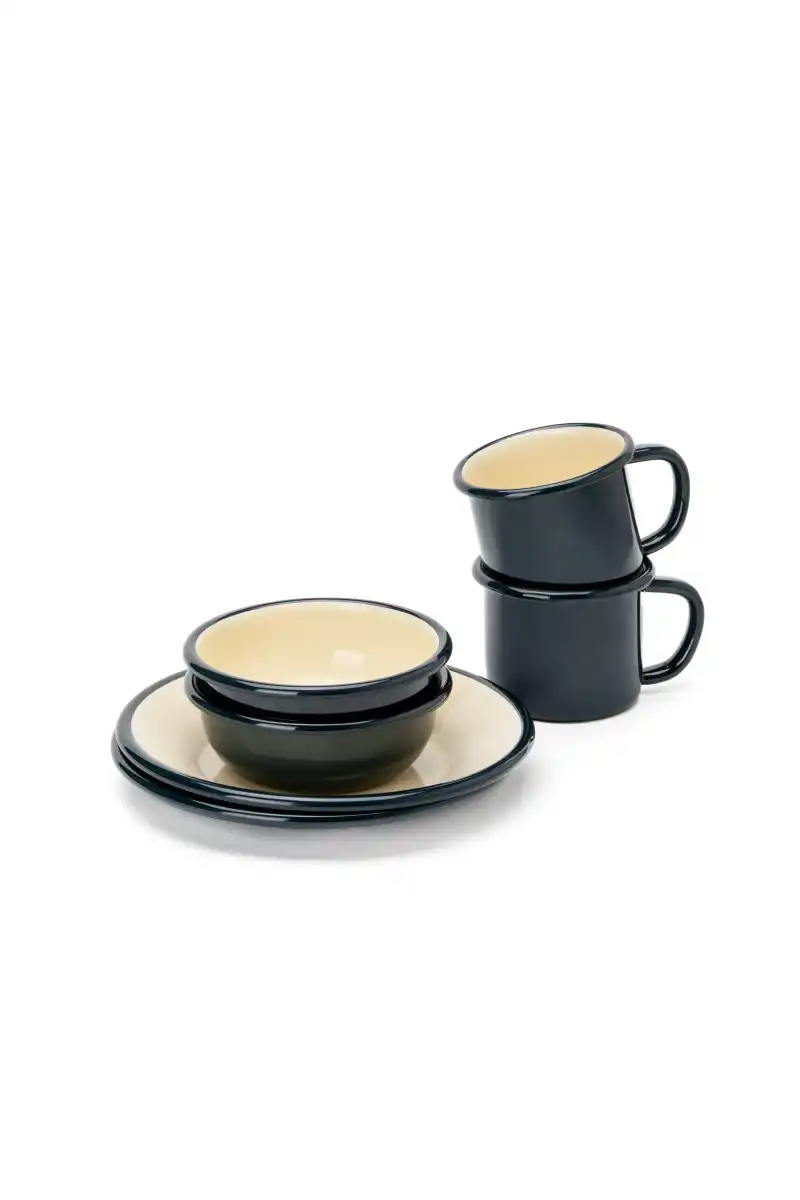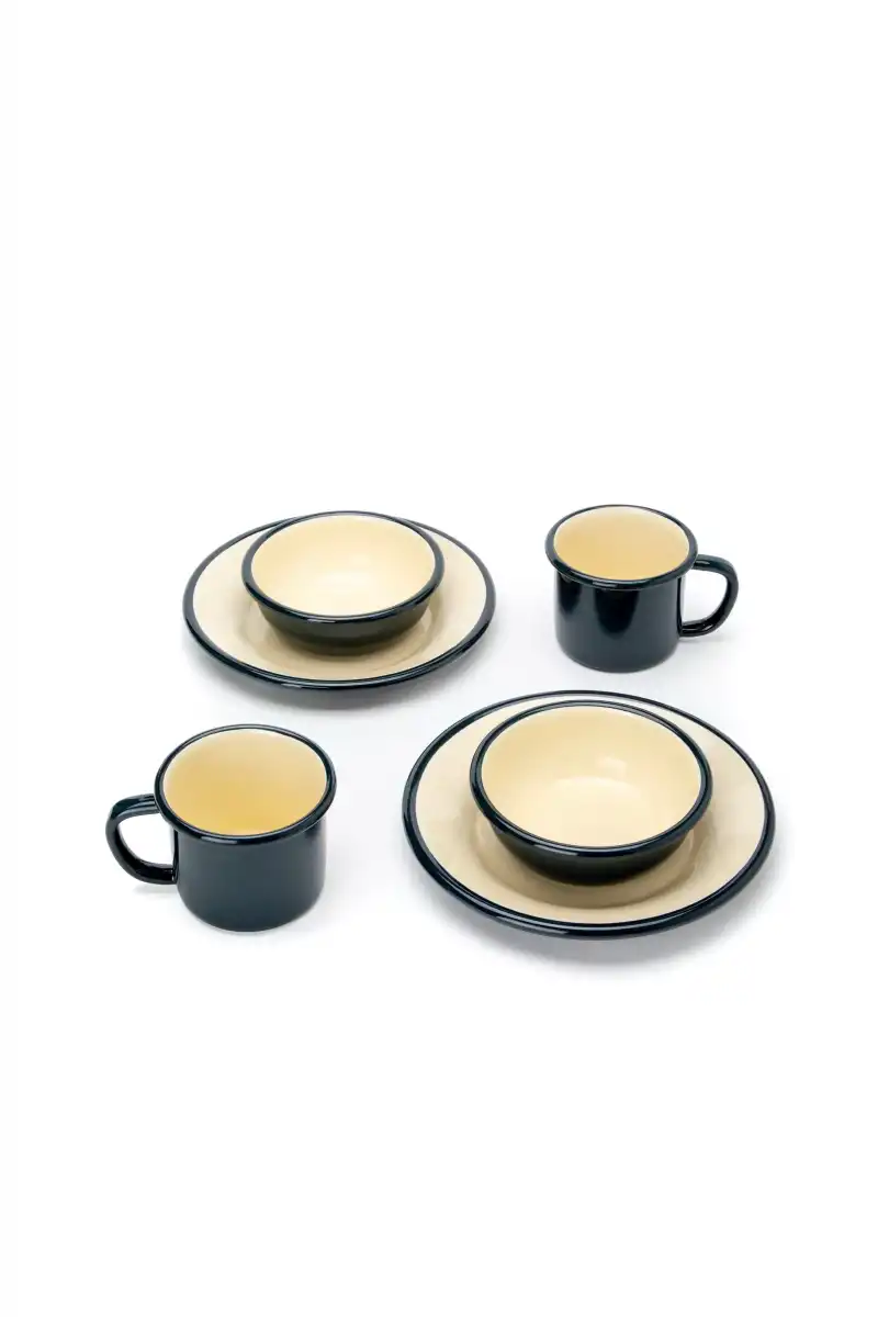 Set içeriğindeki kupalar, tabaklar ve kaseler birlikte kullanıldığında tam bir açık hava yemek deneyimi sunar. Emaye kaplaması sayesinde hem sağlıklı hem de uzun ömürlüdür.