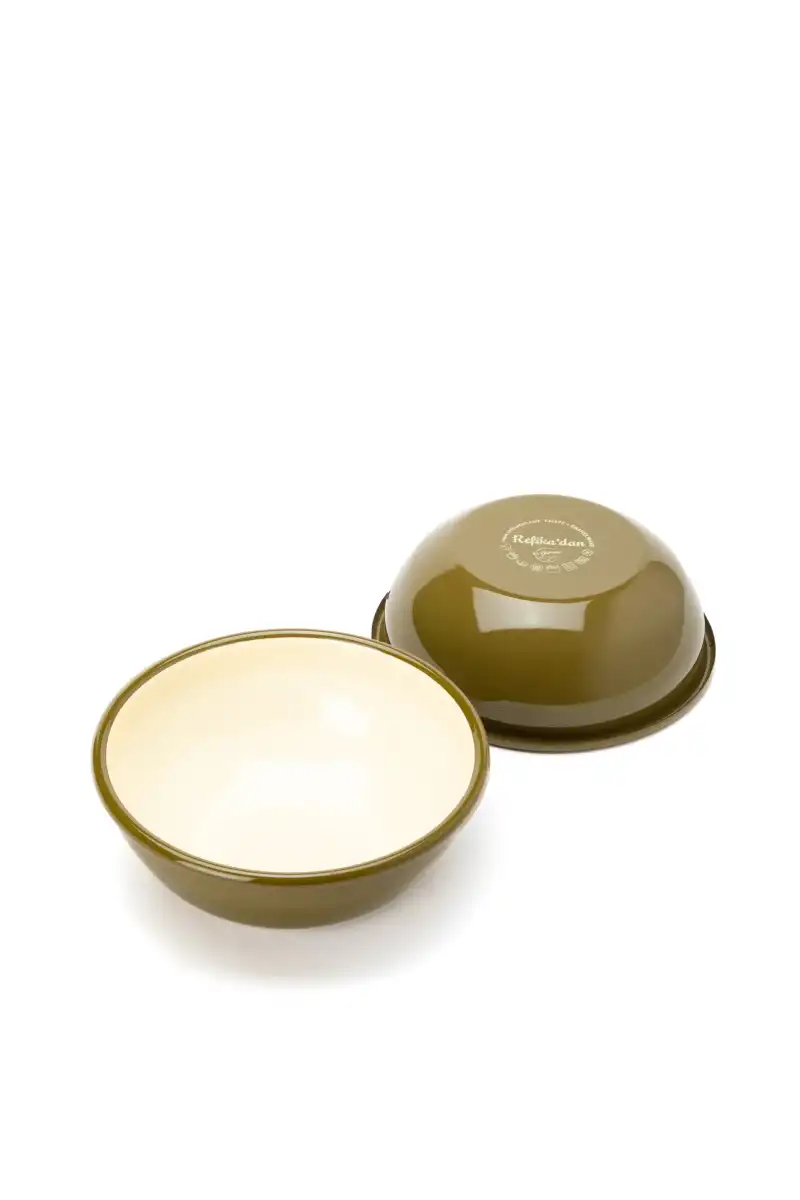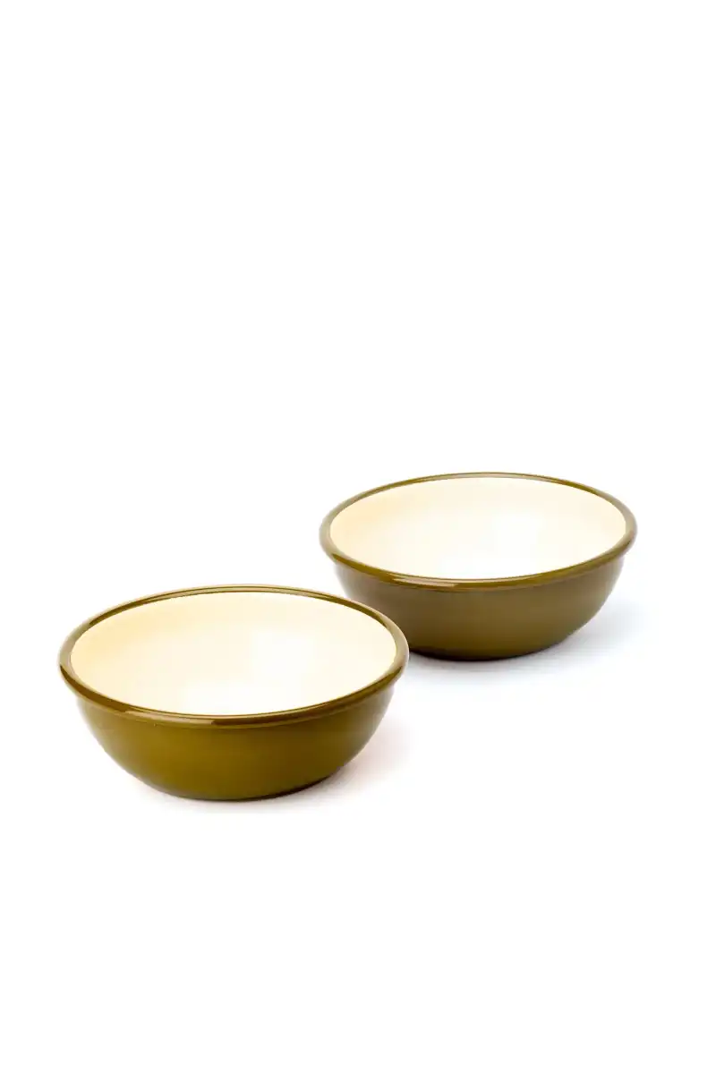 Haki kordonlu emaye kase seti 2li, salata ve servis için sağlıklı nostaljik mutfak seti
