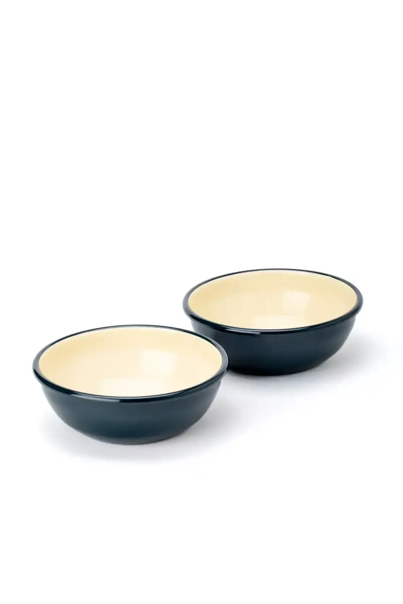 Petrol kordonlu emaye kase seti 2li, salata ve servis için sağlıklı nostaljik mutfak seti