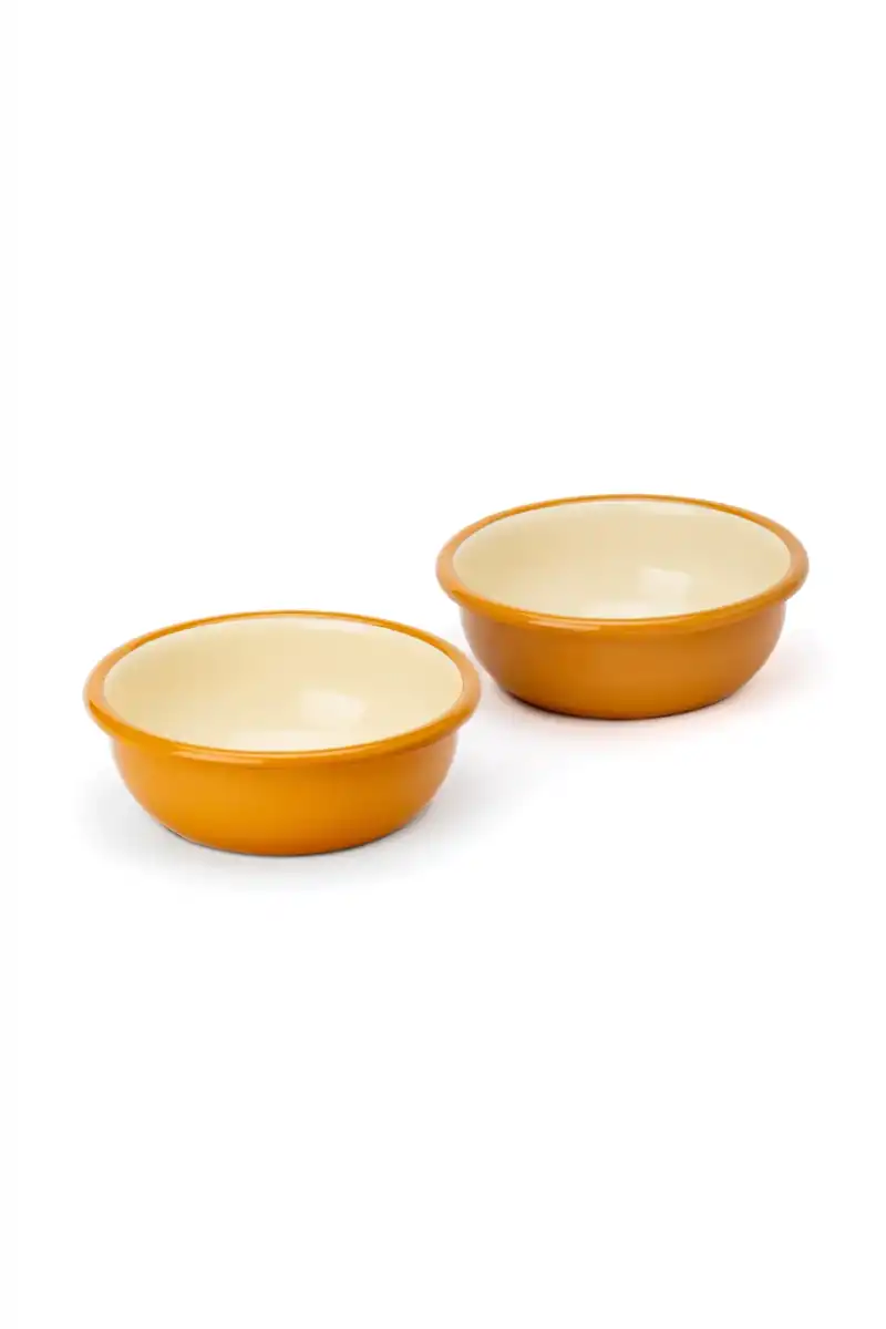 Hardal kordonlu emaye küçük kase seti 2li, kahvaltı sofrası ve meze sunumu için vintage set