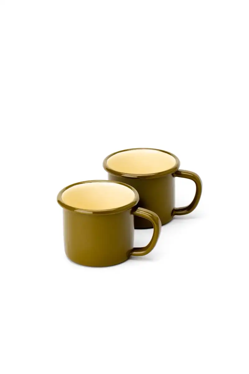 Haki Kordonlu Emaye Kupa Seti, kahve ve çay keyfinizi paylaşmak için idealdir. İki kişilik bu set, hem günlük kullanım hem de kamp ve piknik aktiviteleri için mükemmeldir.