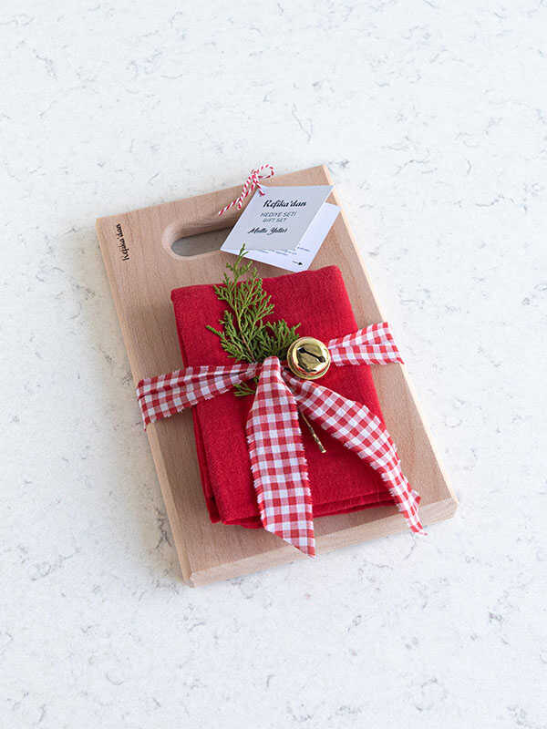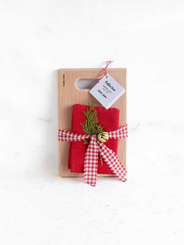 Gürgen Kesme Tahtası+Müslin Kurulama Bezi set - Kırmızı