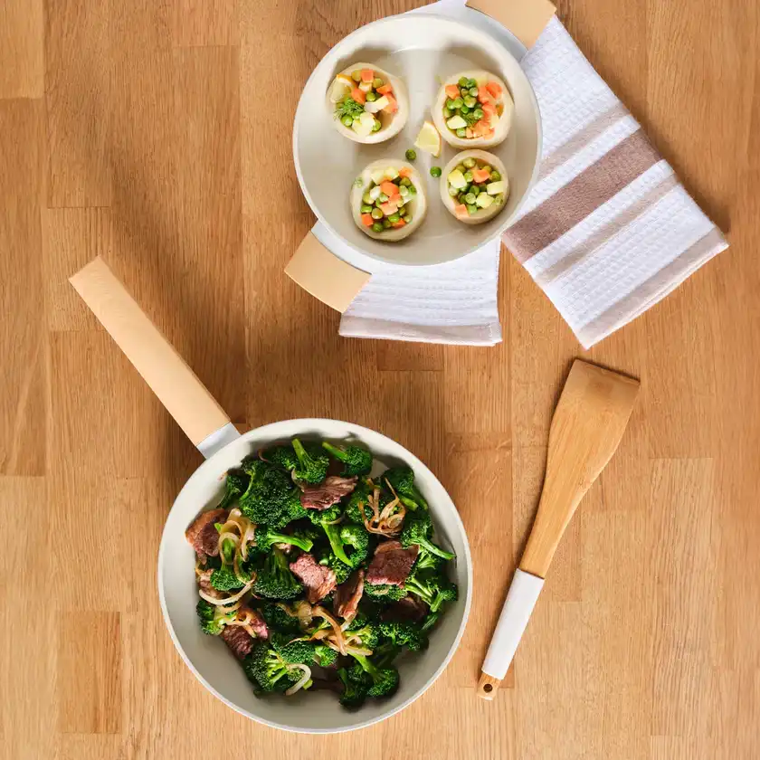 Gelince Haber VerKaraca Swiss Crystal Almond 2-Piece Non-Stick Induction Pan Set, Cream