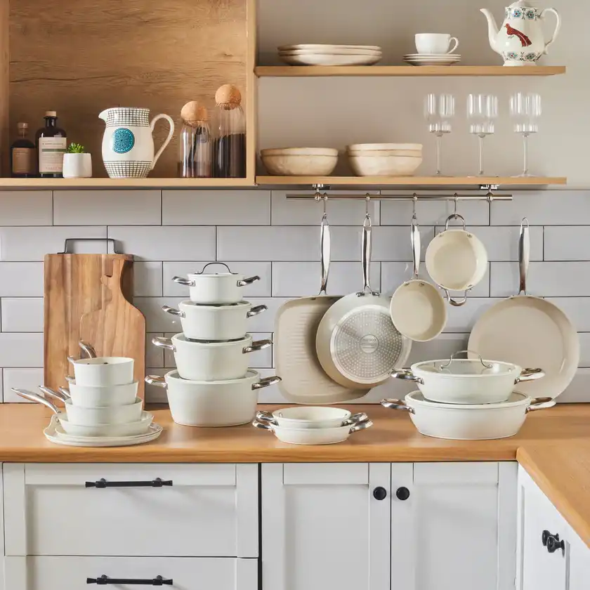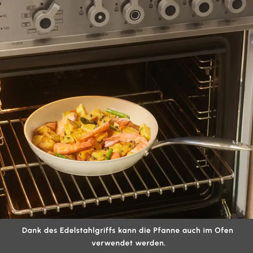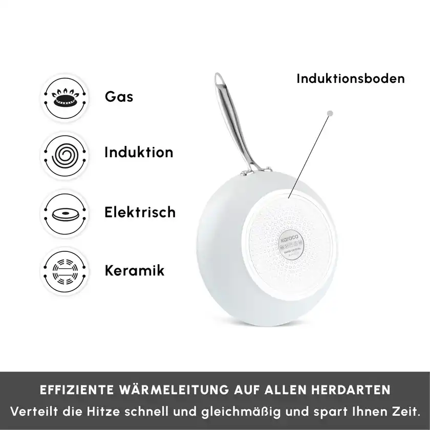 A brand new pan set with excellent non-stick properties: SwissCrystal The Karaca SwissCrystal pan set, which derives its strength from the non-stick coated SwissCrystal surface, offers you the opportunity to prepare a range of dishes in a practical way, such as eggs, fish, chicken, all without oil. The non-stick coating is made with Swiss crystals and contains no harmful chemical compounds such as “PFAS”. The SwissCrystal pan set is also easy to clean! No matter which dish you have prepared, you only need to rinse it briefly under water. The essential and practical features of the SwissCrystal pan set make it easier for you to prepare tasty dishes and ensure easy handling in your kitchen.