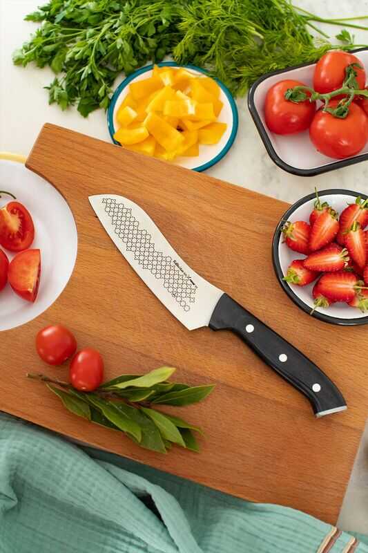 Refika'dan Türkiye'nin Şef Bıçağı, hem profesyonel aşçılar hem de evde yemek yapmayı sevenler için mükemmel bir seçenektir. Keskinliği ve dengesi, bu bıçağı kullanırken size tam kontrol sağlar, bu da hassas doğrama işlemlerini daha kolay ve daha güvenli hale getirir.